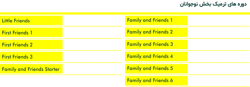 - برگزاری دورههای تخصصی مهارتهای زبانی شامل Listening, Speaking, Reading, Writing